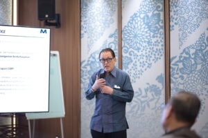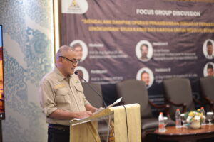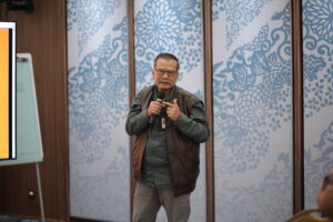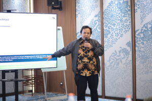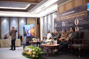 Dr. Ir. Heri Andreas, Koordinator Riset Tim Riset CENAGO ITB memaparkan hasil kajian forensik bencana banjir dan tanah longsor berbasis analisis presipitasi ekstrem, perubahan tutupan lahan, simulasi hidrologi-hidrolika dan karakteristik hidrologi tiga daerah aliran sungai (DAS), yaitu Badiri, Garoga dan Batangtoru di Sumatera Utara.